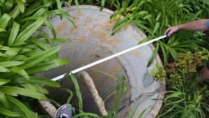 Do not do this if you believe there is any chance you may fall in to the well. Do not send children to do this task.